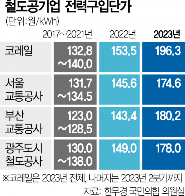 요약 - 최근 서울지하철 요금이 8년 만에 150원 오른 것은 전기요금의 인상으로 인한 부담 때문이라는 지적이 나오고 있습니다. - 서울교통공사가 지불한 전기요금 단가는 2021년에 비해 33% 증가한 174.6원/㎾h로 기록되었습니다. - 부산교통공사 또한 전력 구입 단가가 급증하였으며, 서민의 대중교통에 부담을 가할 우려가 있습니다. - KTX 또한 전기로 동력을 공급받아 전기요금의 계속적인 상승으로 요금 인상이 불가피해질 수 있습니다. 전기요금 인상과 교통요금 - 서울교통공사가 납부한 전기요금은 1076억 원으로, ㎾h당 174.6원으로 증가하였습니다. 2021년 131.7원보다 큰 폭의 상승입니다. - 부산교통공사 역시 전력 구입 단가가 2021년보다 큰 폭으로 상승하였습니다. - 전기요금의 지속..